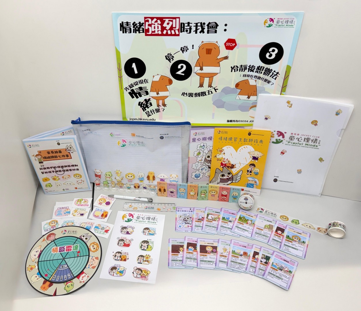 團隊還精心設計了「童心理情小法寶」,當學生感到有壓力或不知所措時,可運用故事中的「法寶」來調節心態,例如手握「耐心時計」,倒數呼吸來平靜內心。加上網上闖關遊戲,讓情緒學習突破課堂限制,成為生活的一部分。