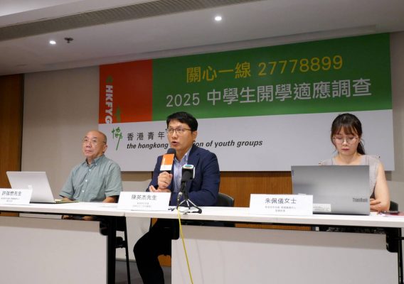 青協輔導服務的「同傾‧同行」平台在去年9月至今年9月期間,共處理25,842宗與情緒相關的熱線求助個案,較去年(18,920宗)顯著上升。與校園相關的求助個案有11,509宗,共中5,510宗來自中學生。網上求助個案(包括WhatsApp及Instagram等青年常用社交平台)方面,則接觸過2,086宗個案,當中以「學業壓力」、「朋輩關係」及「精神健康」為最主要範疇。